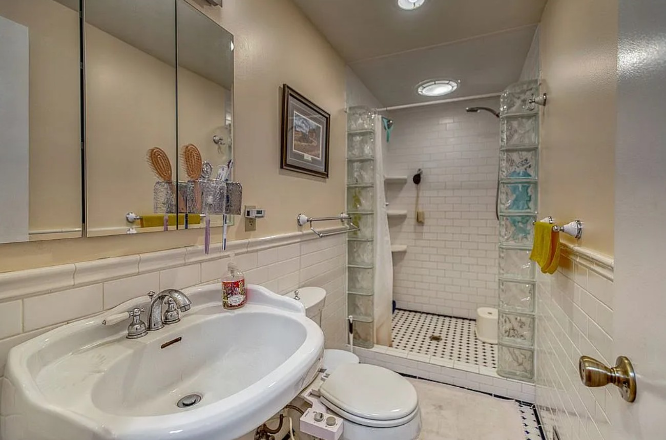 Upstairs, both full bathrooms include modern bidet-equipped toilets, double shower heads, and bright ceramic tile walls and floors for a clean, updated look.