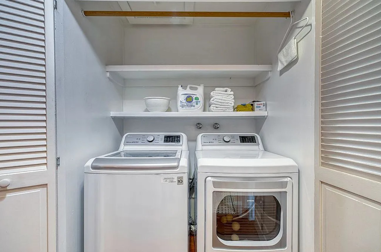 The convenience of an upstairs laundry area adds to the home's functional design.