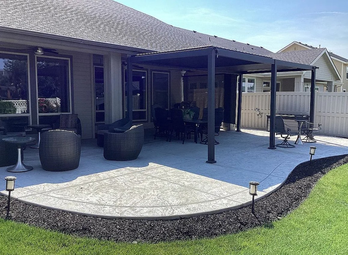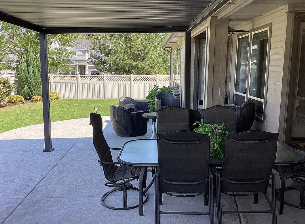 A louvered pergola covers part of the patio, allowing you to enjoy sun or shade on demand great for outdoor dining or lounging during all seasons.