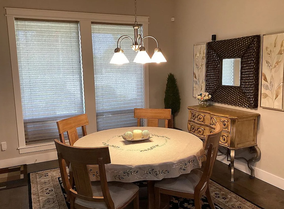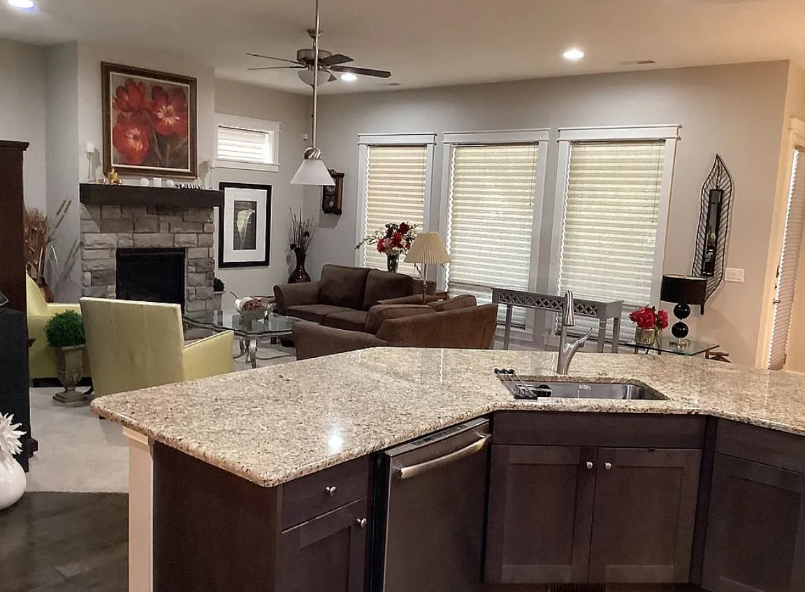 The open-concept layout flows effortlessly between the kitchen, dining, and living areas, making it ideal for both entertaining and everyday living.