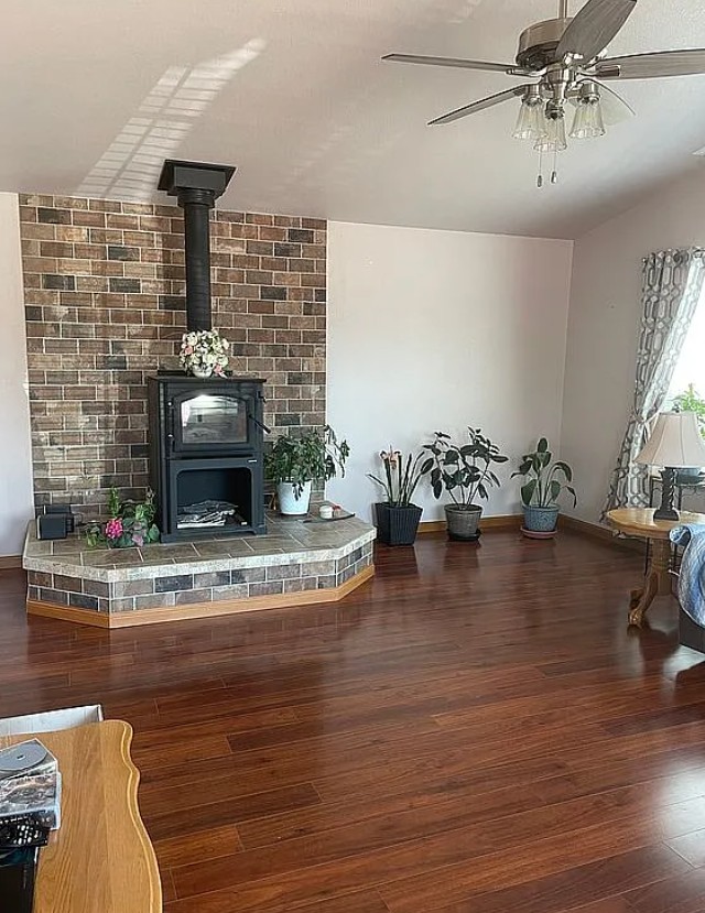 Heat and cooling are top notch with forced-air gas heat, electric air conditioning, and a wood stove for backup warmth.