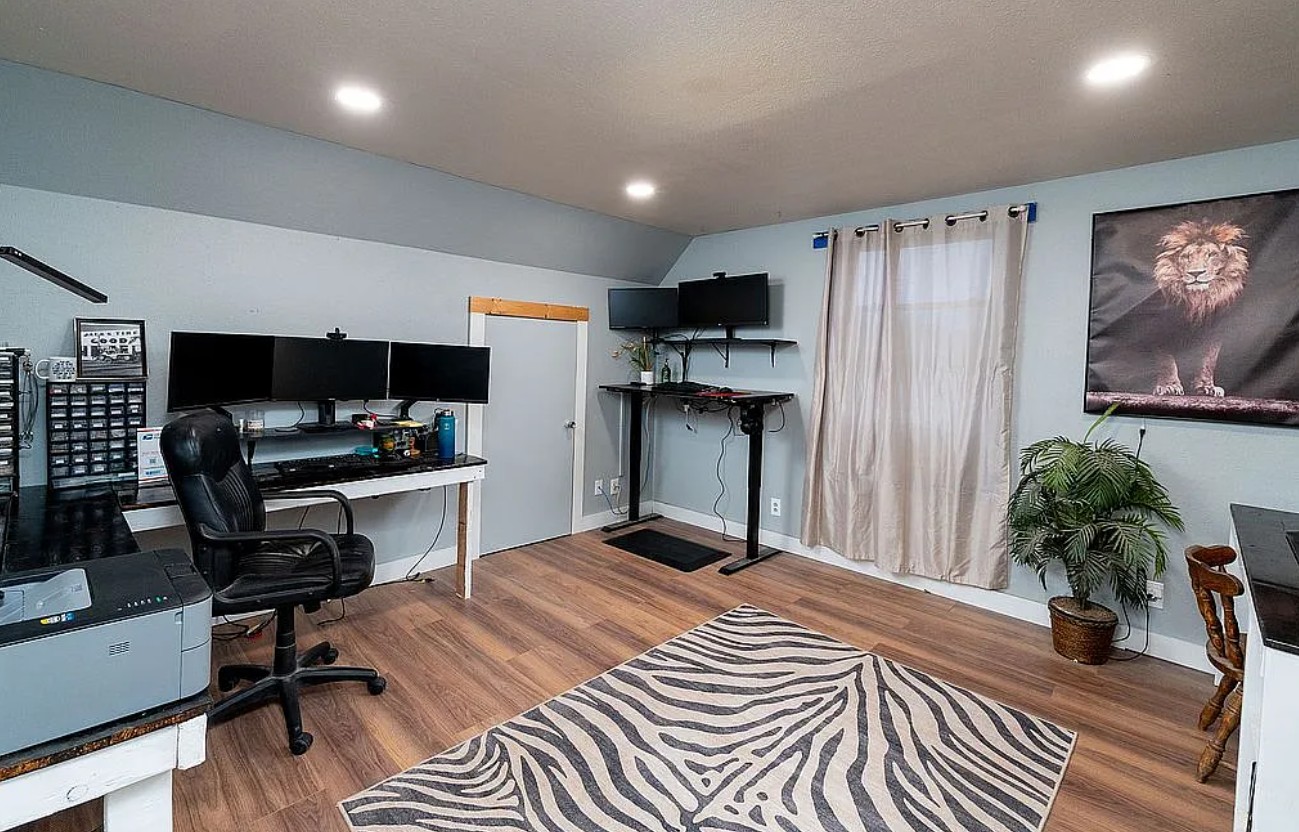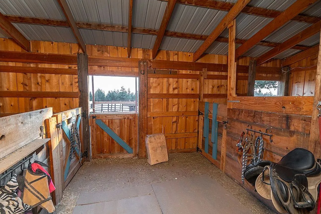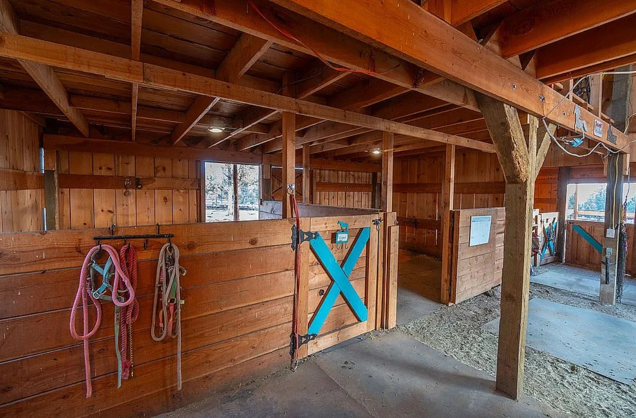 This estate features an impressive custom barn with 4 individual stalls and outdoor runs, a large loft for storage, a dedicated feed room, and flexible space perfect for animals, equipment, or creative work.