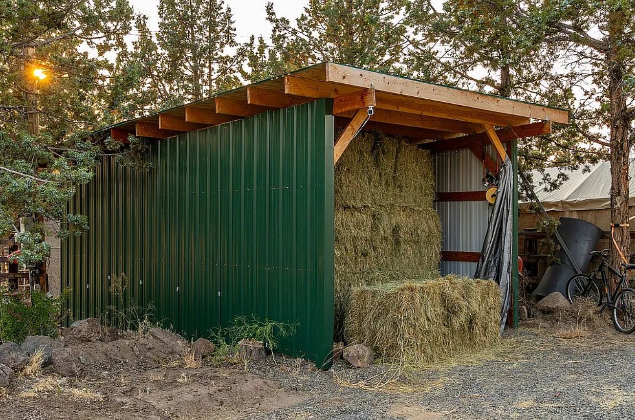 A turnout pasture and 24×24 extra tall shop offer room for both livestock and projects.