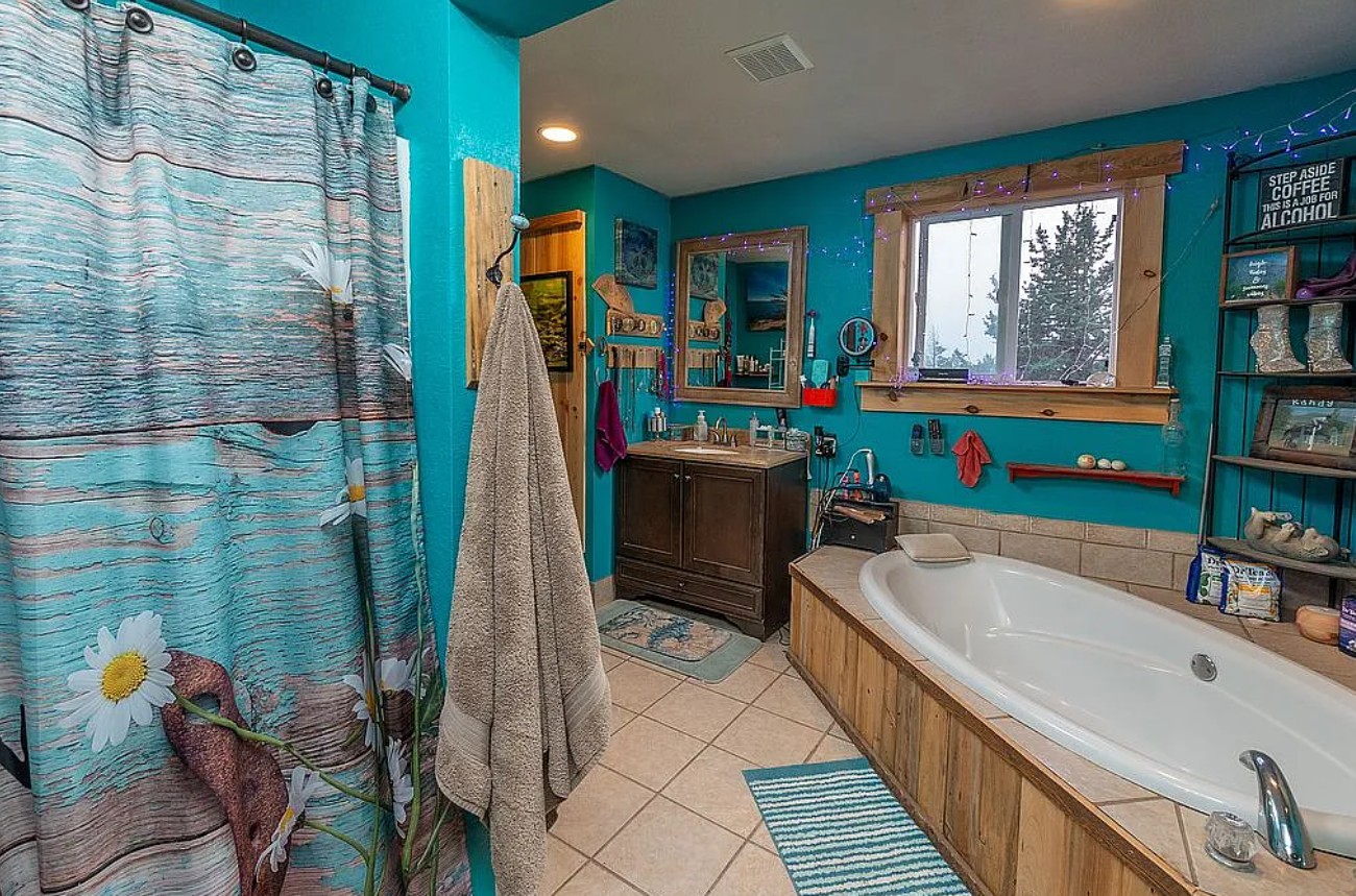 The main?level primary suite has its own private deck and luxurious soaking tub, combining comfort and style.