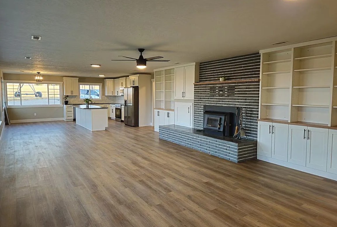 The open, bright floor plan features a gorgeous fireplace with custom built-ins and plenty of storage throughout, making it ideal for comfortable family living.
