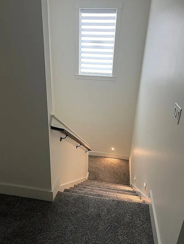 A stackable washer/dryer is located on the lower level, while a full laundry room adds convenience on the second floor.