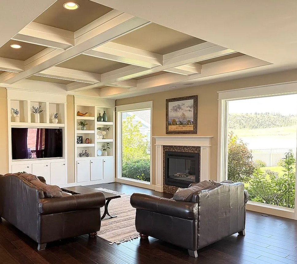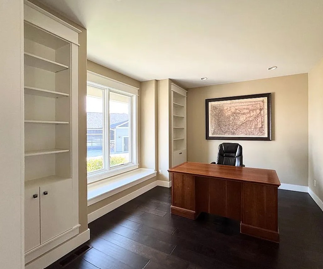 Downstairs, you’ll find three spacious bedrooms with large walk-in closets, two additional bathrooms, a sizable entertainment area, and a flex room that can serve as an office, gym, or playroom.