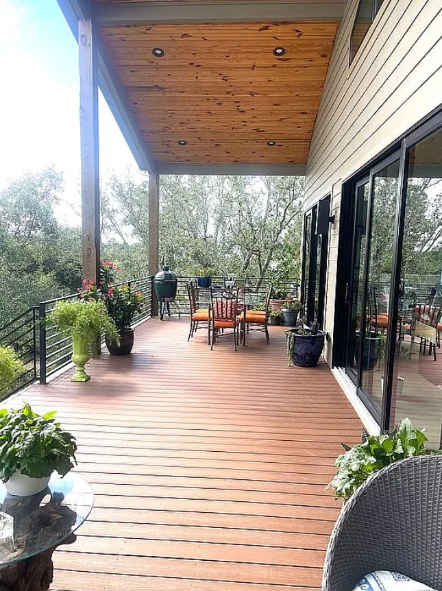 Upstairs, enjoy a balcony deck and a large Trex deck surrounding the home.