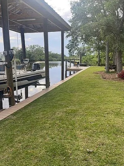 The property includes a new bulkhead boathouse and two decks over the water, perfect for fishing, relaxing, or soaking in sunsets.