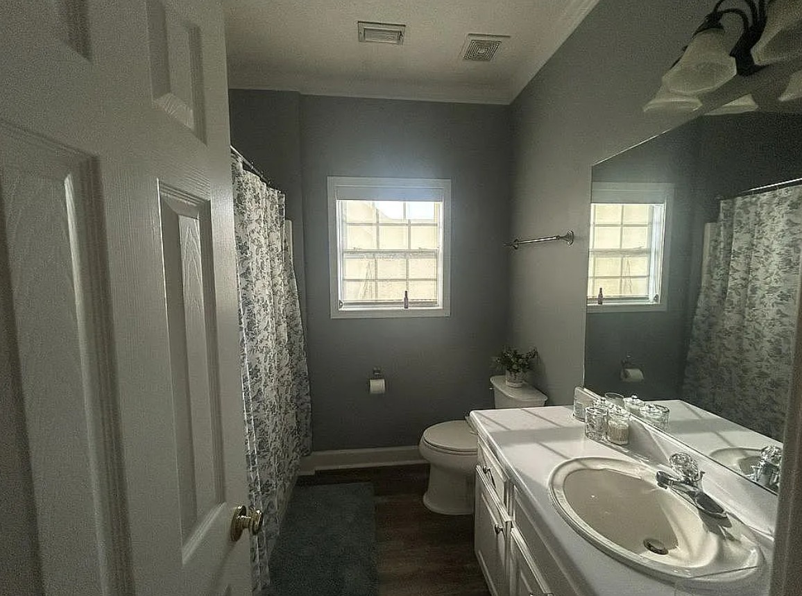 The home features a spacious master suite with his and hers walk-in closets and dual sinks, a heat pump less than 6 years old, and a durable architectural shingle roof that’s under 15 years old.
