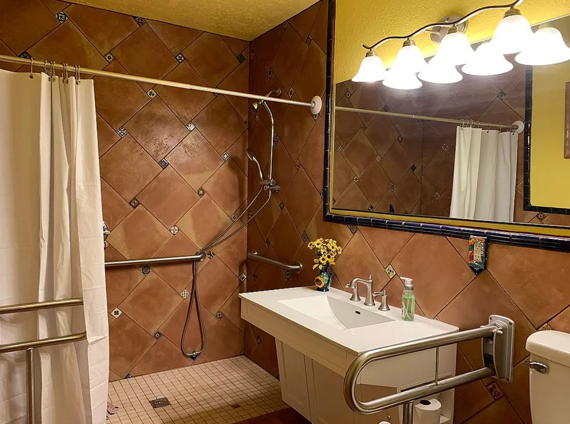One of the standout features is a fully equipped handicapped-accessible suite, complete with a roll-in shower, private kitchenette, and separate entrance offering independence and comfort for aging parents or loved ones with mobility needs.