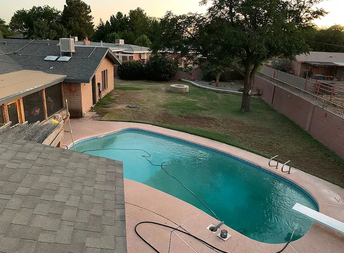 The property also boasts a four car garage, a large backyard with plenty of room for entertaining or gardening, and a private pool for cooling off in the New Mexico sun.