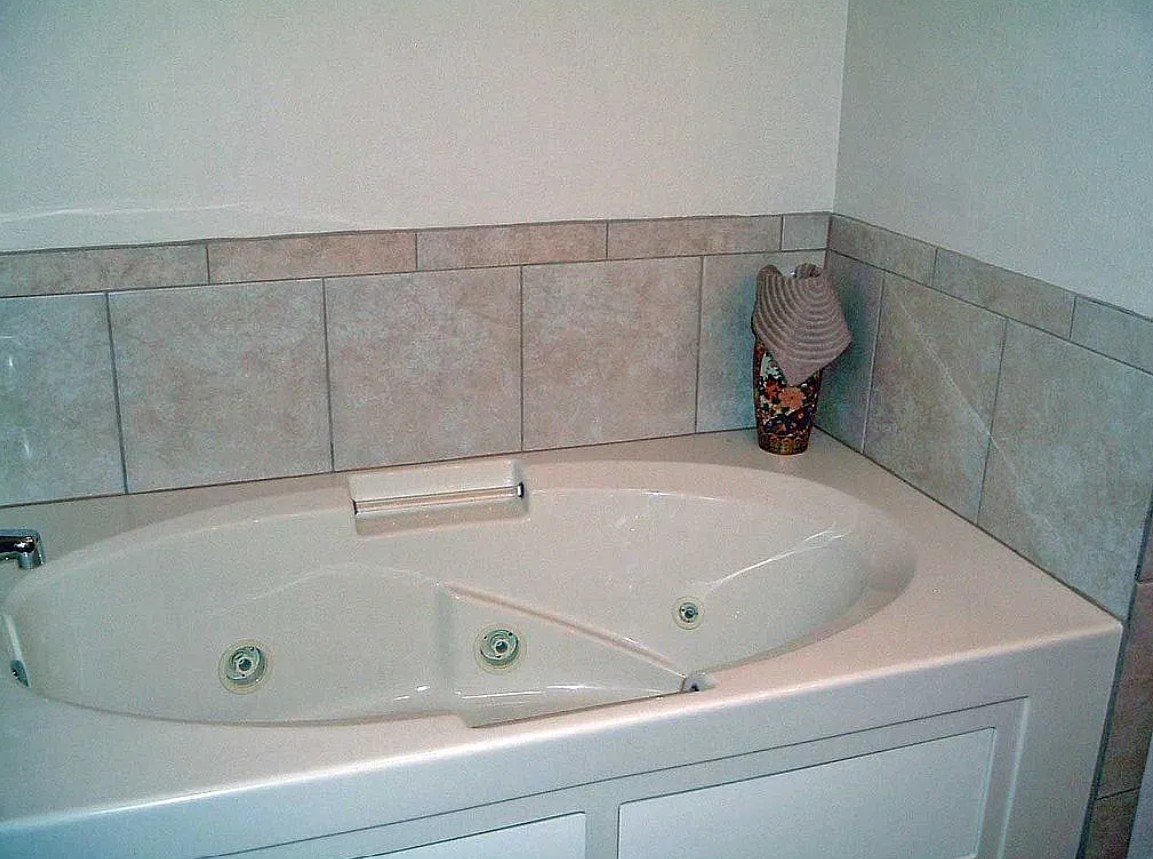 The master suite features a walk-in closet, a private bathroom with a jetted tub, and a separate walk-in shower, offering a spa like retreat within your own home.