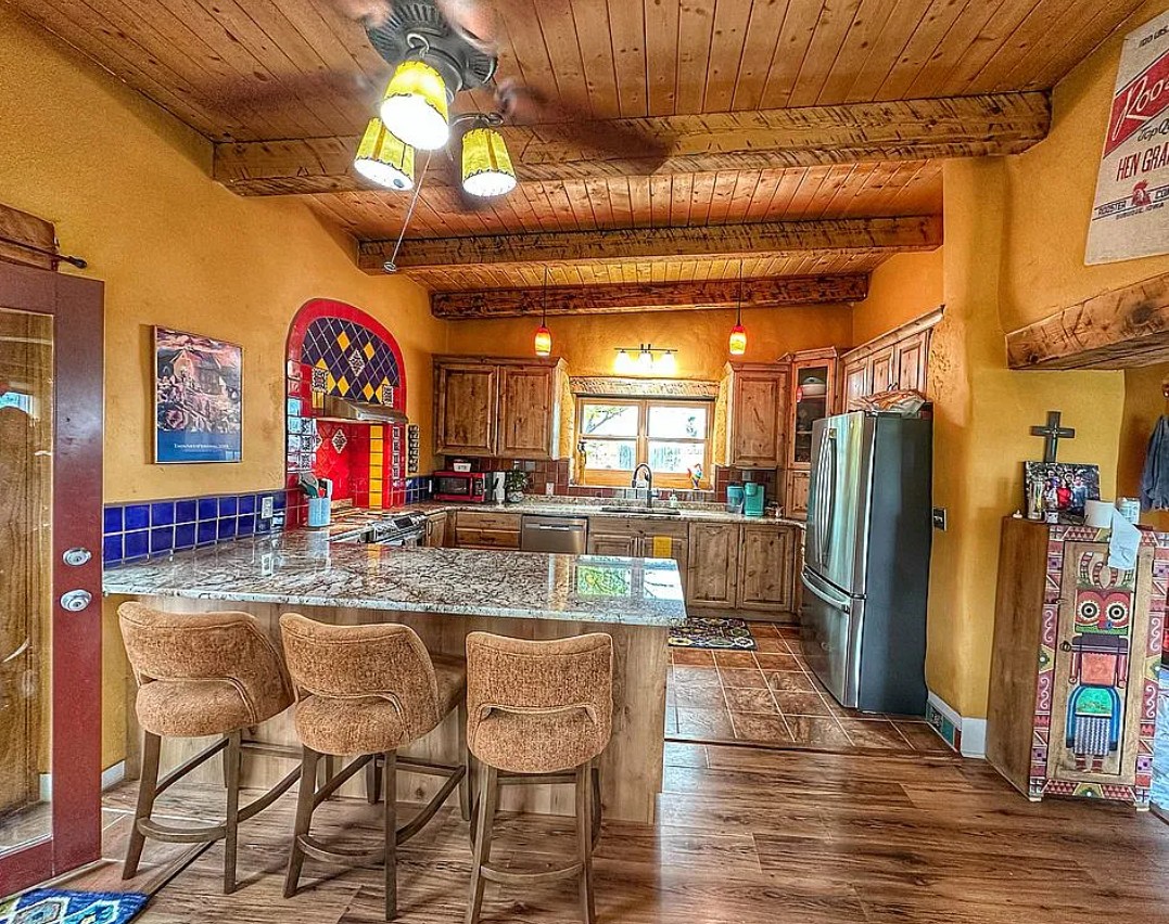 Between both structures, there are five kivas and a wood-stove for cozy ambiance.
