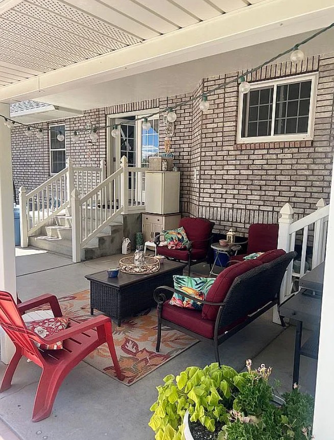 Outside, the 1 acre irrigated lot showcases lush, established landscaping, a wraparound porch, and a backyard oasis complete with a swimming pool, water feature, large covered patio, and a fenced yard ideal for pets, kids, or entertaining.