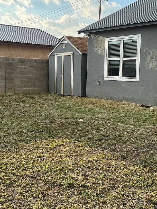 Enjoy outdoor space in the fenced backyard, which includes a storage building, perfect for tools or extra storage.