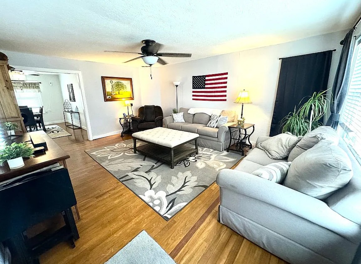 Featuring beautiful hardwood floors, new bedroom carpets, and a large kitchen with plenty of cabinets and stainless steel appliances, this home is move-in ready and ideal for first time buyers, small families, or VA qualified buyers.