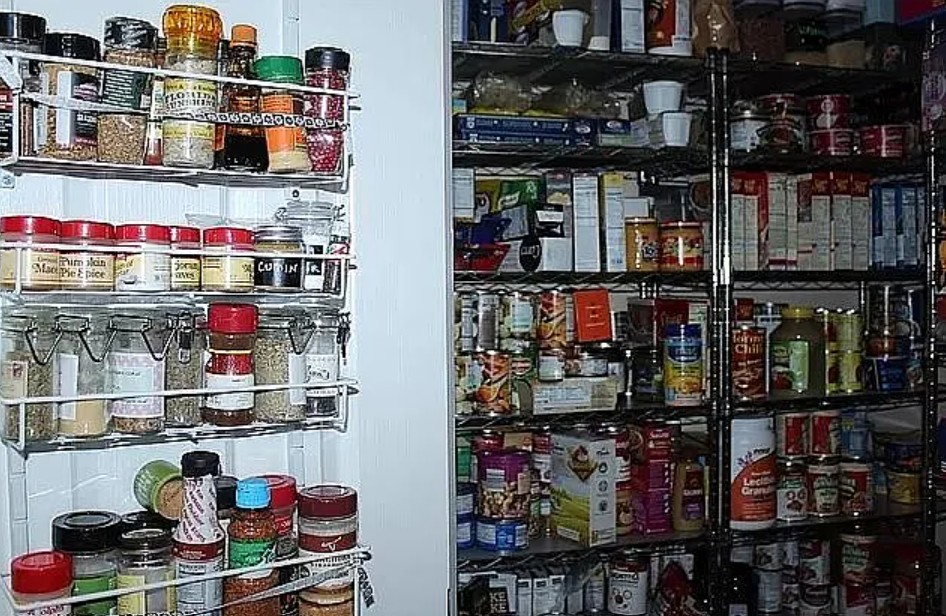 The kitchen includes a raised café bar, expansive pantry, stainless steel appliances, and tile floors.