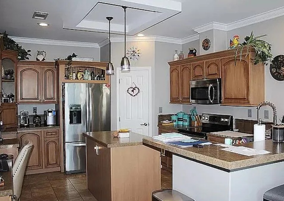 Inside, you’ll find a bright open floor plan with a center island, desk area, vaulted ceilings, and a split bedroom layout for privacy.
