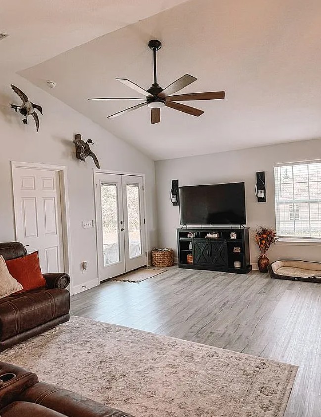 Inside, the inviting layout features vaulted ceilings and abundant natural light, creating a bright and airy living space ideal for everyday living or entertaining.