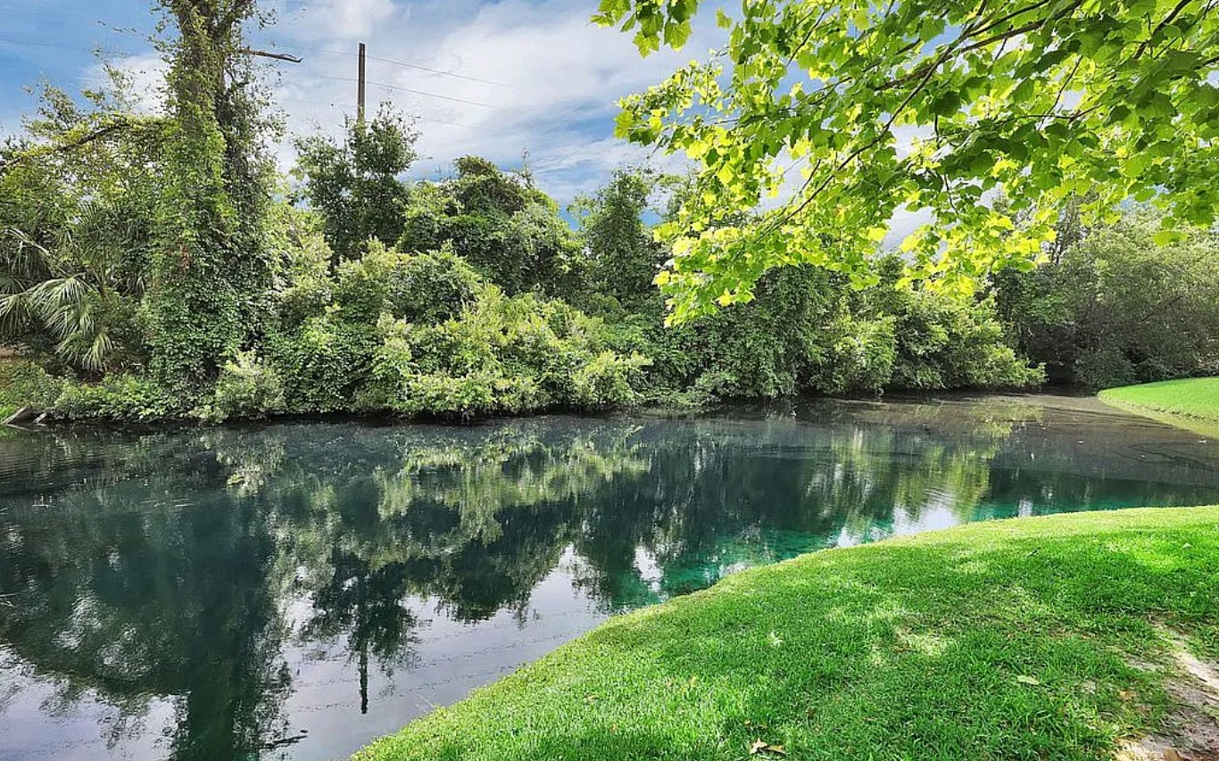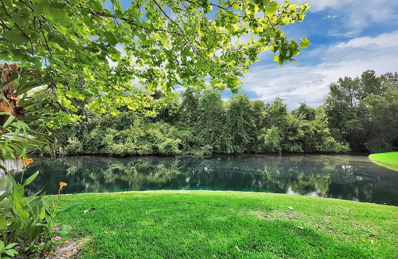 Situated on a tranquil pond, this property offers exquisite water views from both the living room and primary suite.