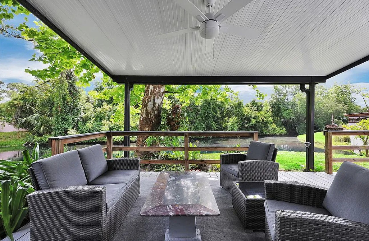 Enjoy your morning coffee or evening wine on the spacious covered Trex deck overlooking the water, complete with a soothing fountain and shade from mature sycamore trees perfect for nature and wildlife lovers.