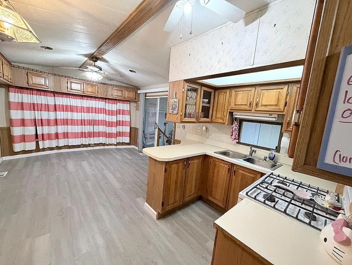 The gas stove kitchen is perfect for home cooking, while the big carport adds valuable parking or storage space.