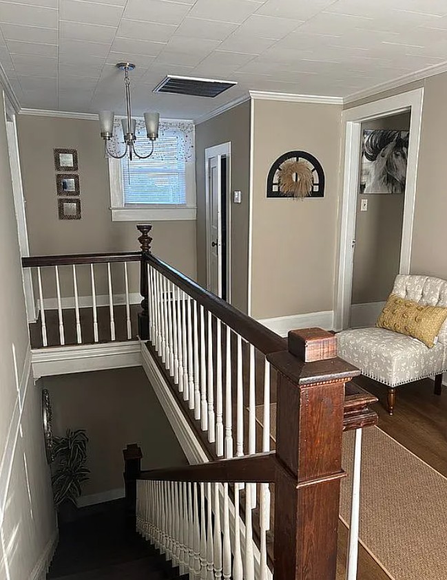 Inside, you’ll be welcomed by a warm, inviting space filled with high hardwood ceilings, gleaming hardwood floors, and multiple fireplaces that enhance the home’s character and comfort.