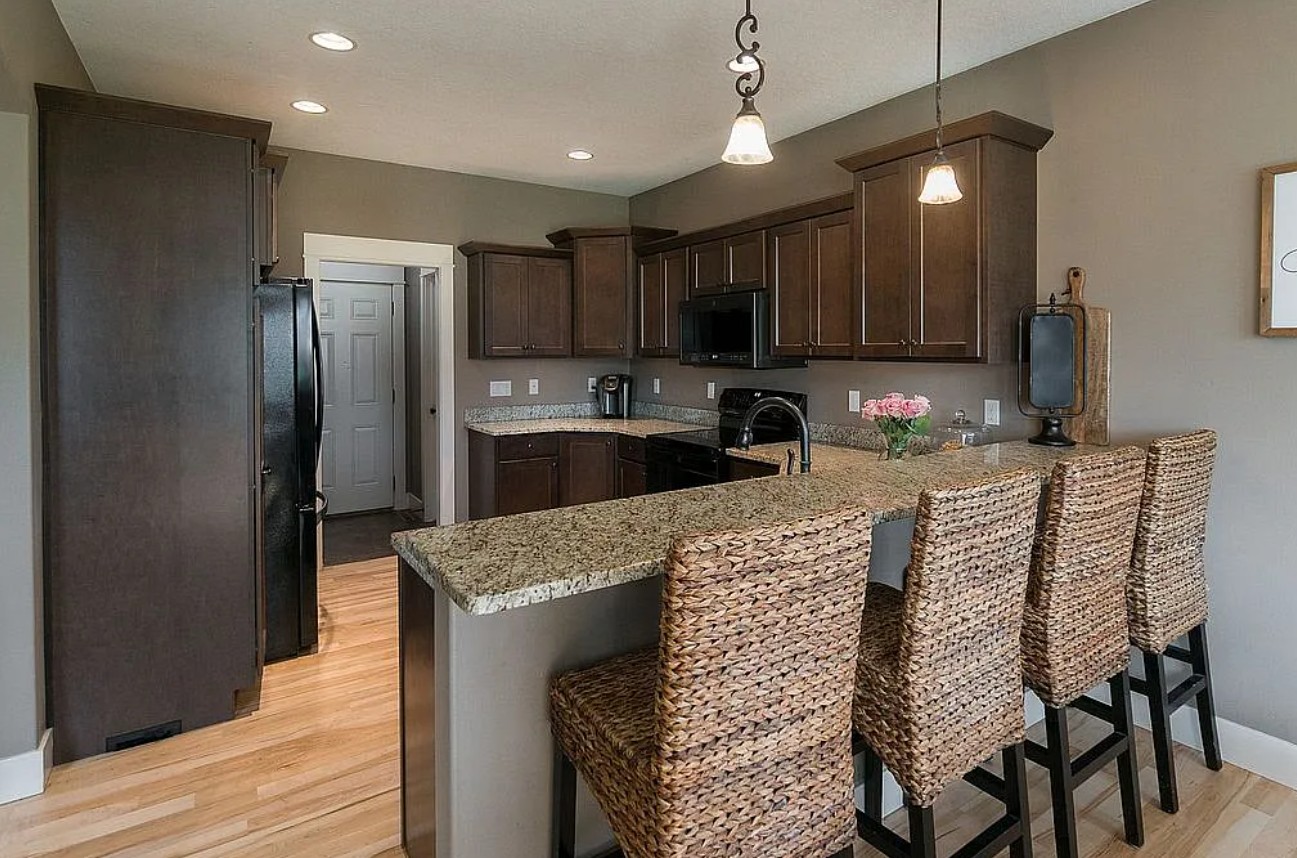 The kitchen is designed for both everyday living and entertaining, featuring granite countertops, a pantry, a breakfast bar, and included appliances.