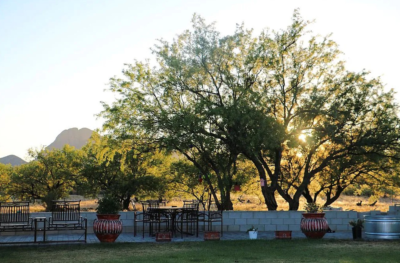 Mature mesquite trees provide shade and attract native birds, enhancing the property’s serene desert atmosphere.