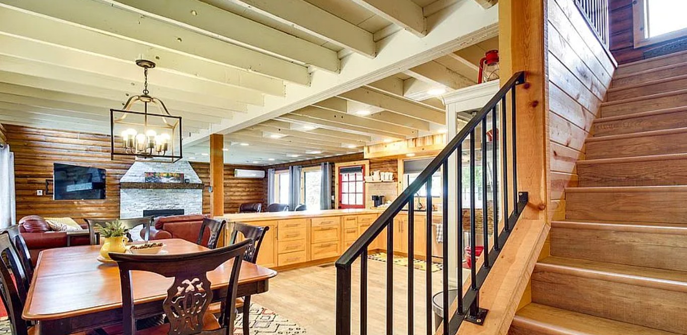 Built in 1982, this fully furnished mountain retreat combines rustic charm with modern convenience, offering all the comforts of city living in a peaceful natural setting.