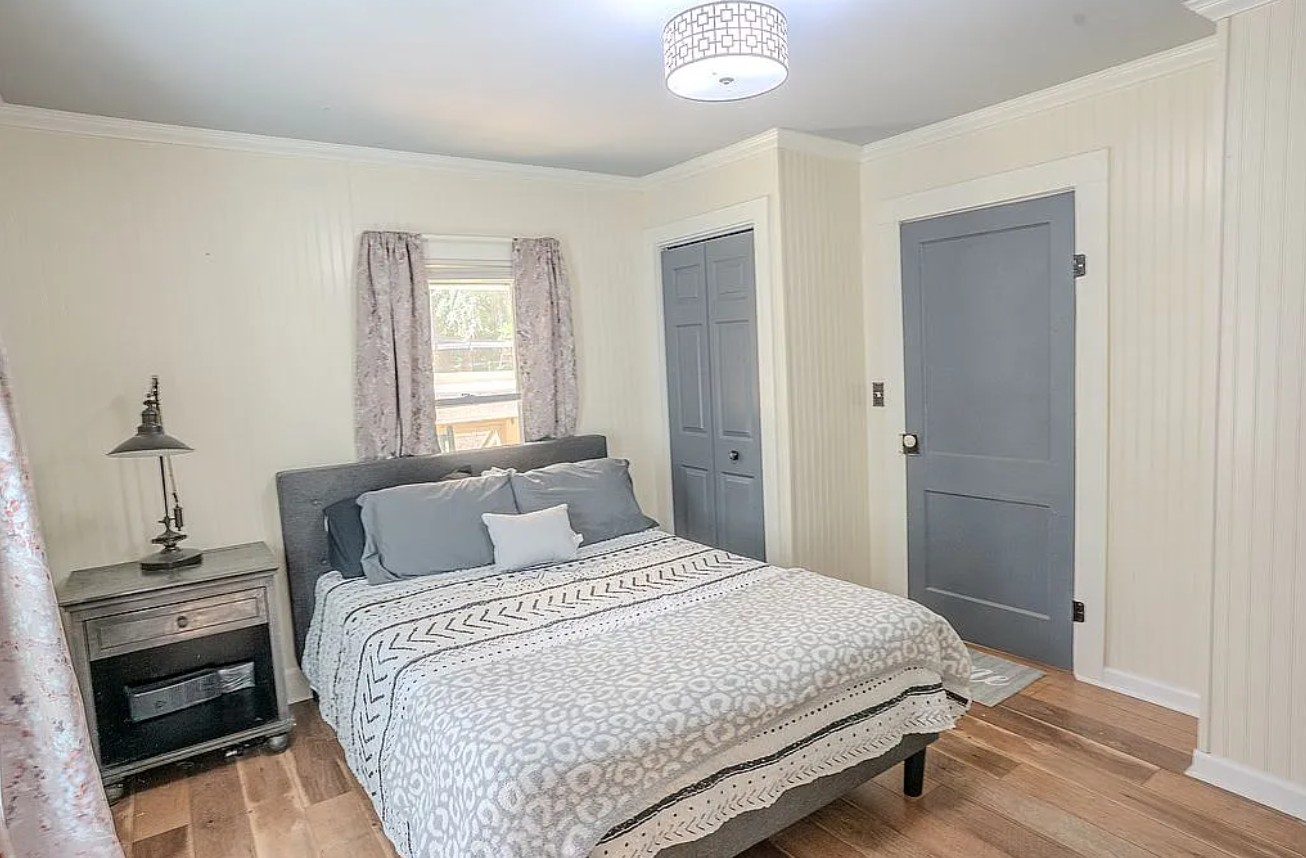 The master bedroom offers a relaxing retreat after a long day, with a warm, comfortable atmosphere.