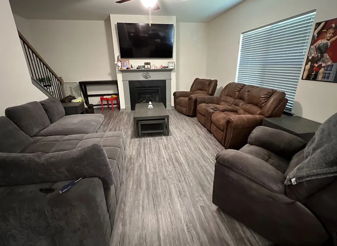 The adjoining kitchen offers style and functionality, complete with durable LVP flooring, generous counter space, and a layout designed for easy everyday living.