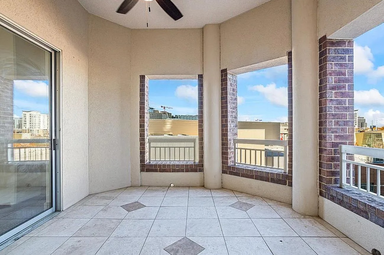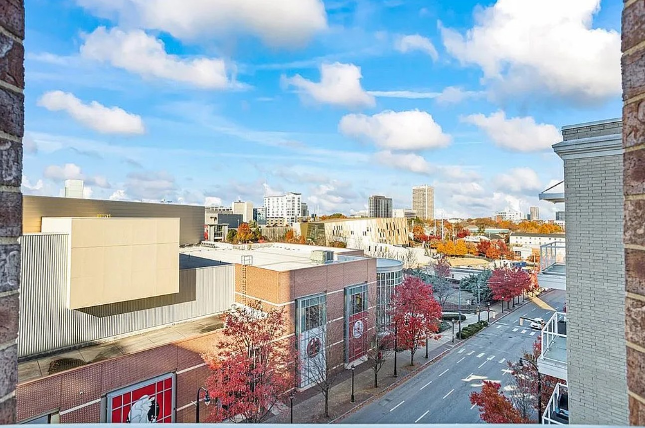 High ceilings enhance the home’s bright and airy atmosphere, while the covered patio provides breathtaking views of downtown Atlanta, making it an ideal spot for relaxing or entertaining year-round.