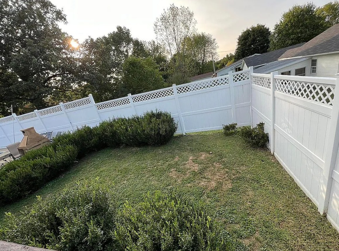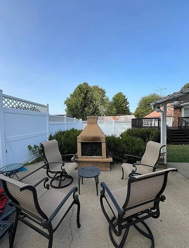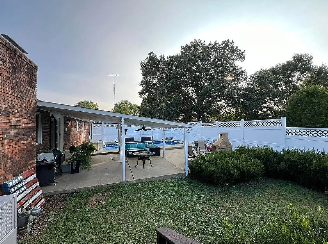 Outdoor living is easy with a covered back patio overlooking a fenced-in area and an in-ground concrete pool, perfect for entertaining and relaxing during warm Kentucky summers.
