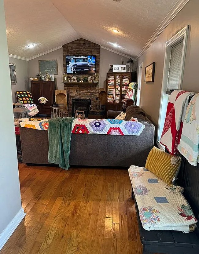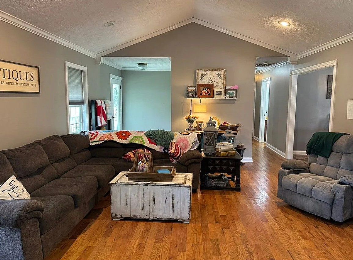 This property features gorgeous hardwood floors, vaulted ceilings in both the living room and primary suite, and a bright sunroom perfect for relaxing or entertaining.