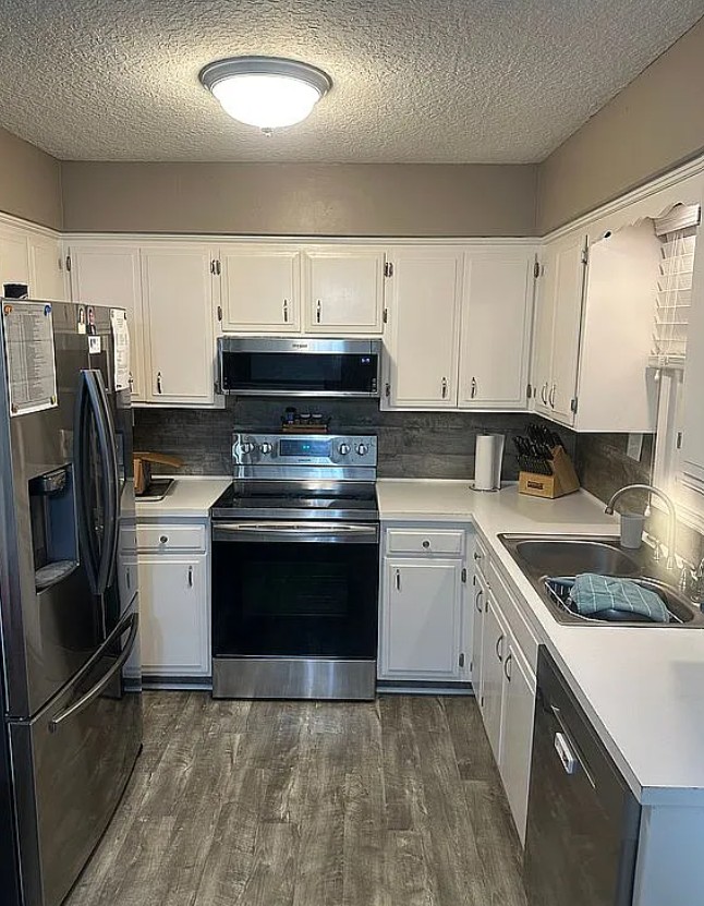 The home comes equipped with stainless steel appliances, including a stove, dishwasher, and over the range microwave.