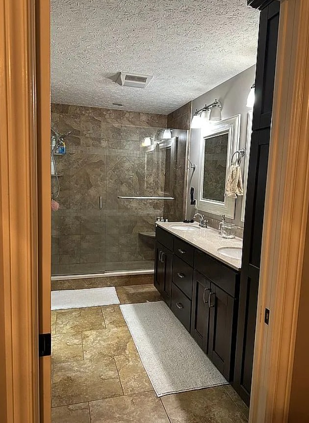 The master suite offers a double bowl vanity and a large walk in tiled shower, while additional highlights include crown molding, recessed lighting, a large laundry room, and a double attached garage.