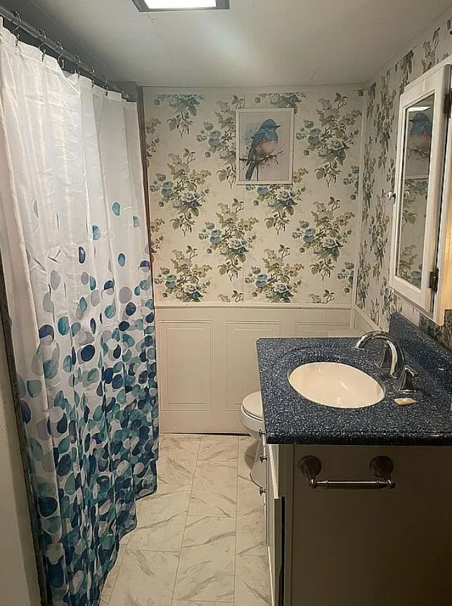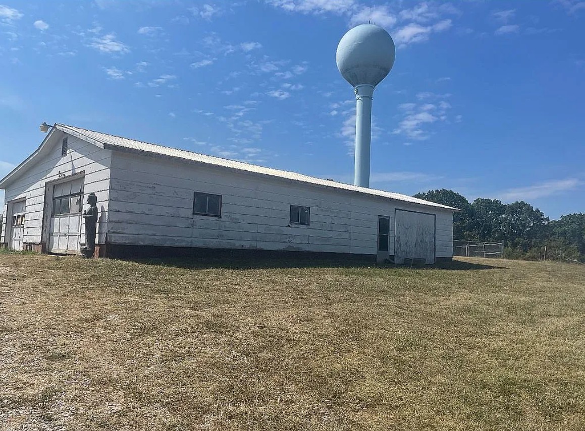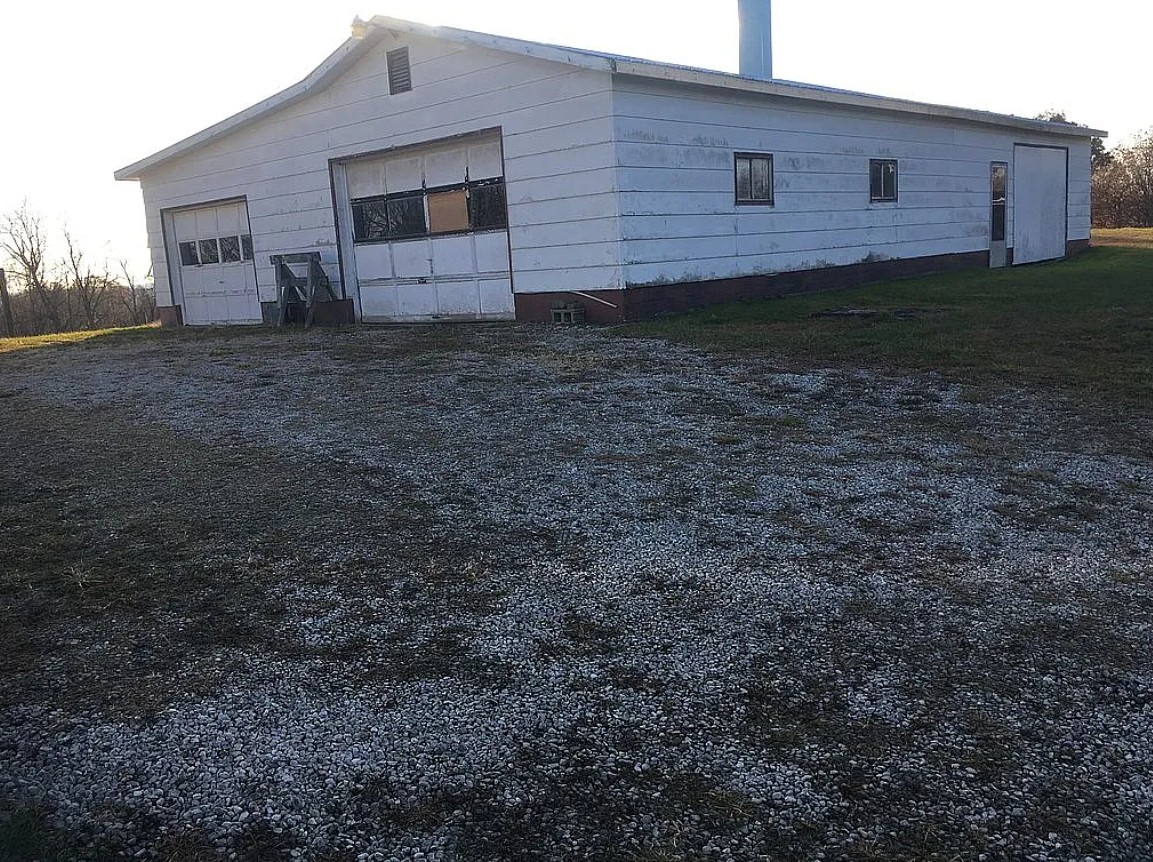 A massive 40×60 garage with cement floors, electric, and water offers space for up to four F 150 trucks and was previously used for a painting business; the additional garage area with dirt floors provides even more storage.