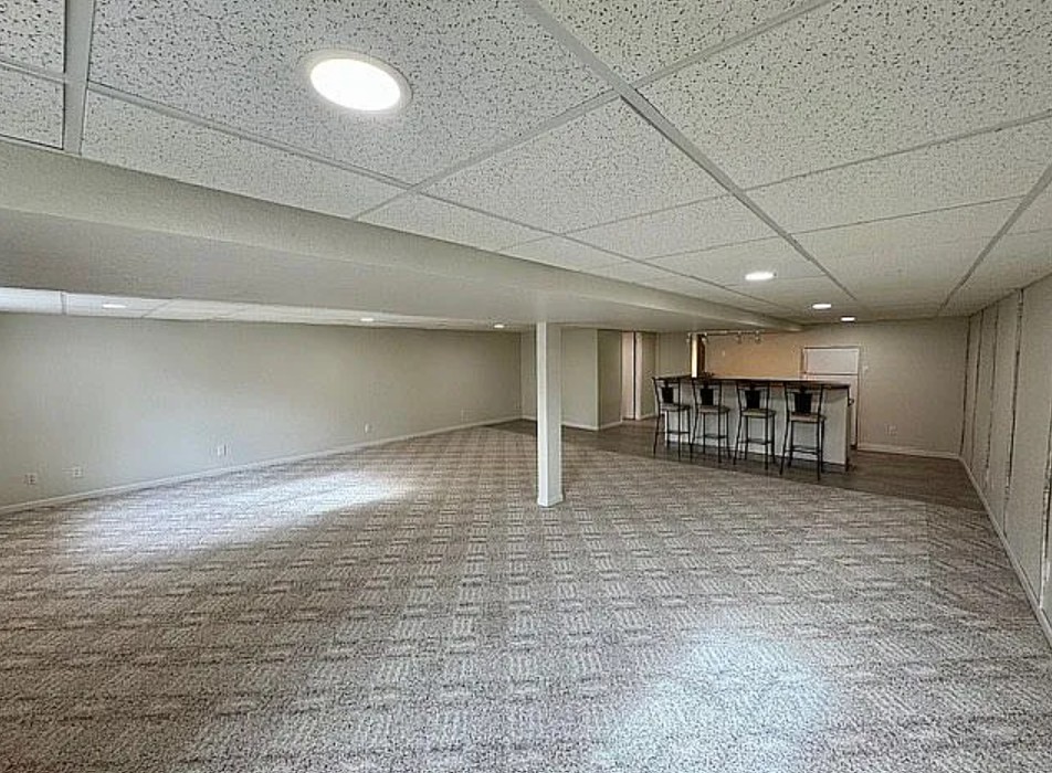 The finished basement expands your living space with a huge family room, wet bar, refrigerator, full bathroom, craft space, laundry connections, and ample storage perfect for guests, hobbies, or game-day gatherings.