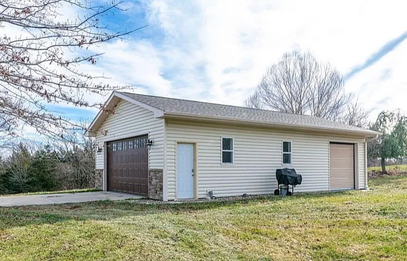 Outside, a custom-built shop offers exceptional workspace and storage, designed with practicality and ease in mind.