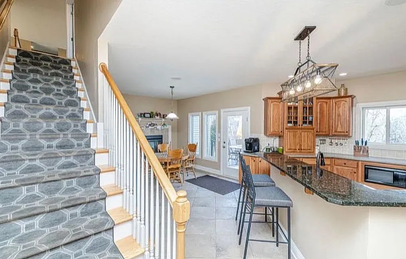 The newly finished lower level is perfect for entertaining, complete with a wet bar, custom wine racks, and large windows showcasing serene wooded views.