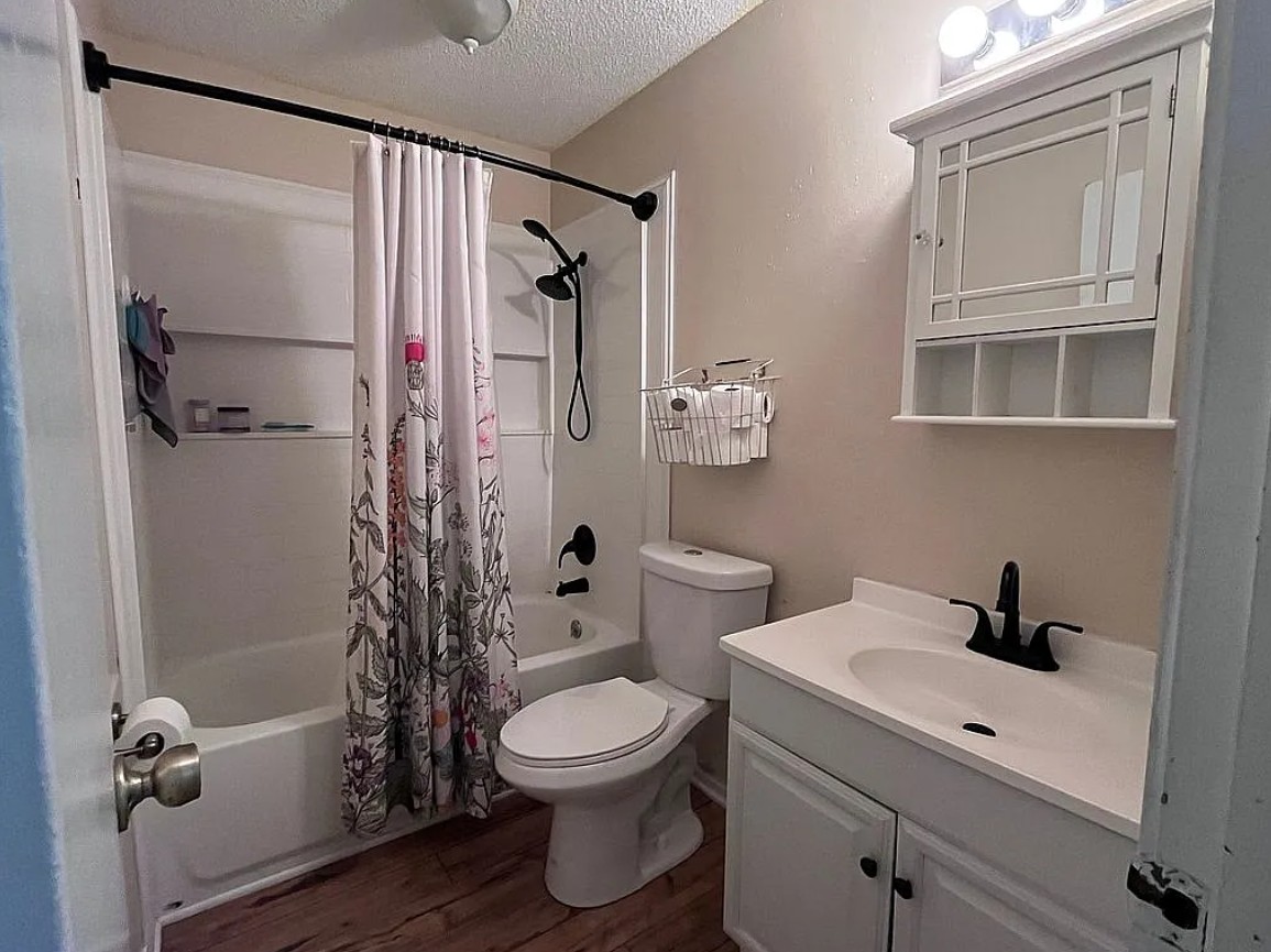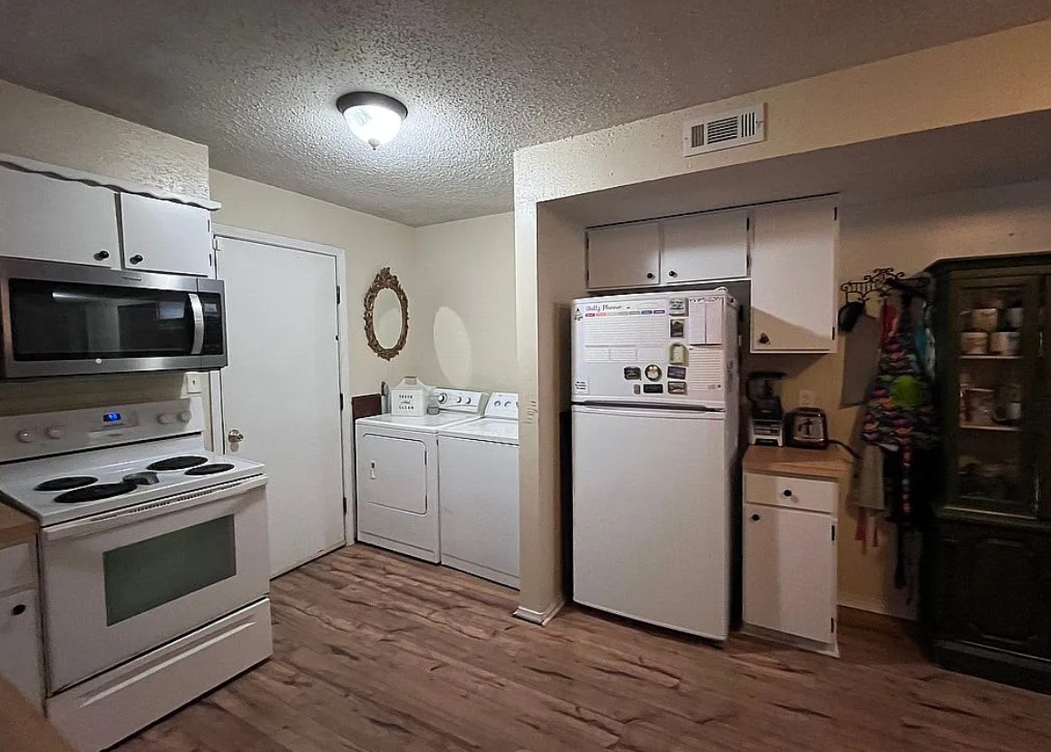 The home includes a fully remodeled bathroom, a new back sliding door with a lifetime warranty, and kitchen and laundry appliances that stay.