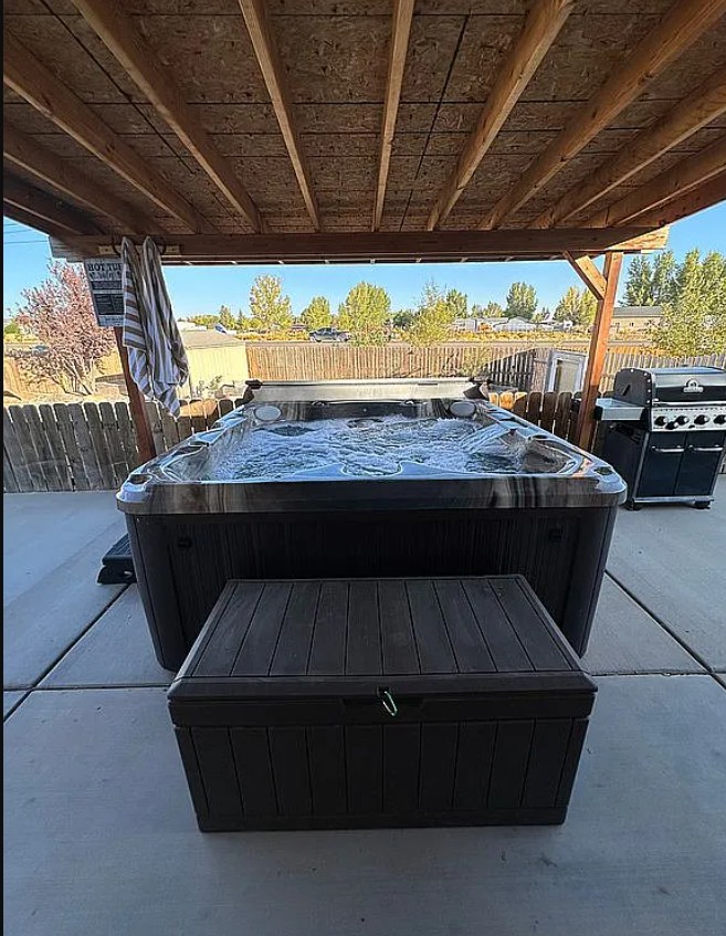 The master bathroom was remodeled in 2020 with a modern walk-in shower, and an above-ground hot tub was added in late 2021 for year-round relaxation.