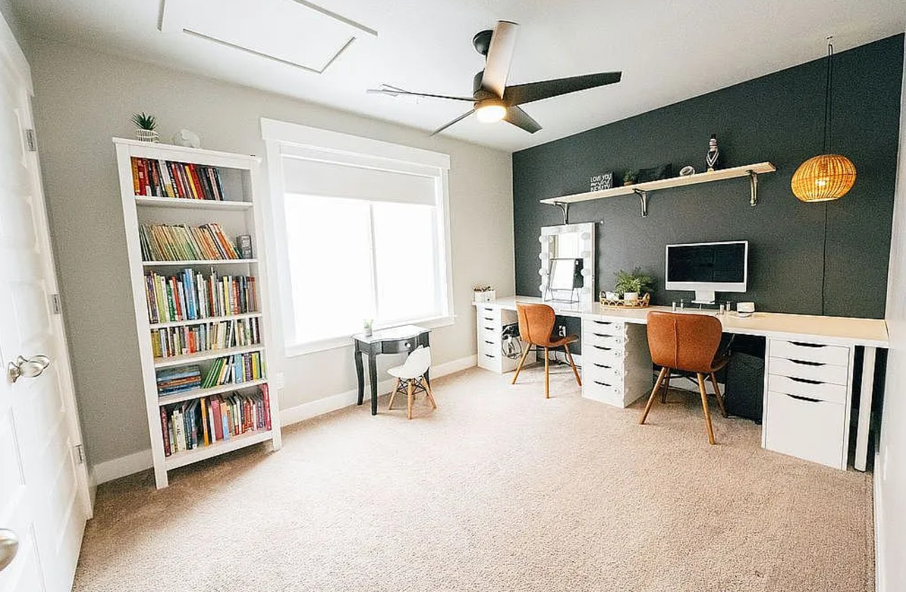 All upstairs bedrooms include new matte black ceiling fans and blackout blinds.