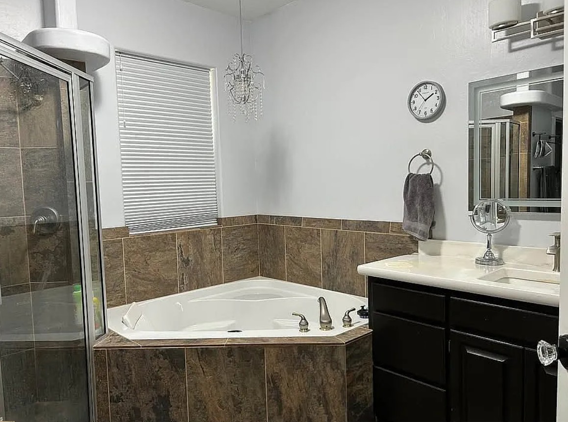 The primary suite features a walk-in closet, private bathroom with dual sinks, a walk-in shower, jetted soaking tub, and a separate private toilet room.