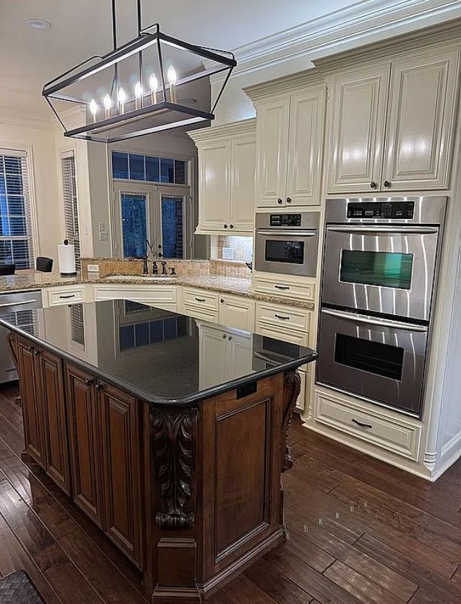 The interior showcases a spacious layout with real hardwood floors, granite countertops, and thoughtful design extras throughout.