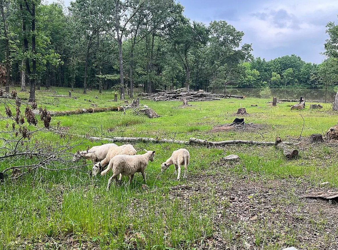 Escape to your own mountainside barndominium in Hackett, Arkansas, featuring a long private drive and breathtaking views of a large pond, wooded areas, and pastureland.