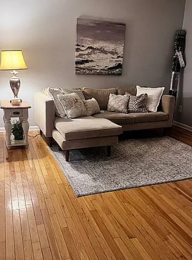 The property features hardwood floors, brand new carpet in the bedrooms, and ceramic bathrooms throughout, creating a fresh, comfortable living space.