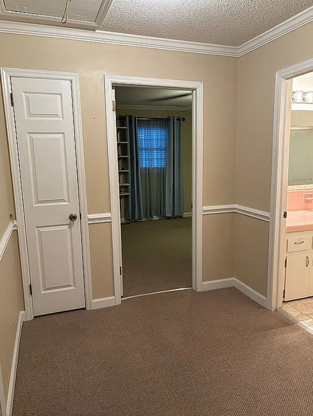 The additional two bedrooms are located on the opposite end of the home, separated by a hallway that includes a full bathroom with a large step-in shower and a convenient linen closet.